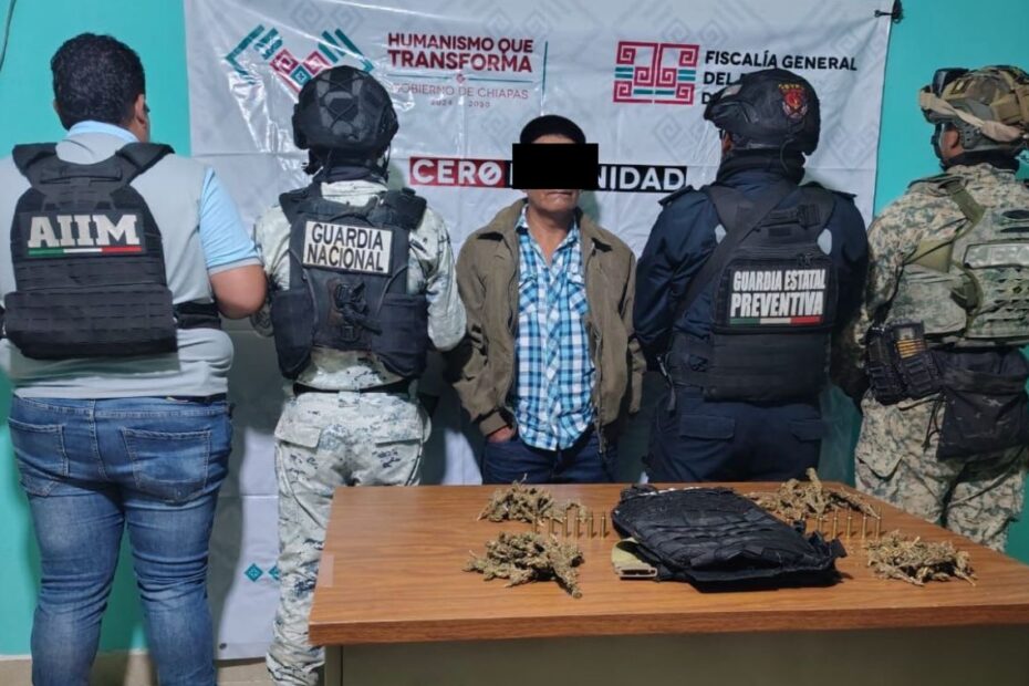 En operativo interinstitucional, la Secretaría de Seguridad del Pueblo (SSP) a través de la Guardia Estatal Preventiva, en coordinación con la Agencia de Investigación e Inteligencia Ministerial de la Fiscalía General del Estado (FGE), la Secretaría de Seguridad y Protección Ciudadana (SSPC) del Gobierno Federal, el Ejército Mexicano y la Guardia Nacional, detuvieron a una persona del sexo masculino como presunto responsable de agresión con arma de fuego en Rincón Chamula y en posesión de presuntos narcóticos.