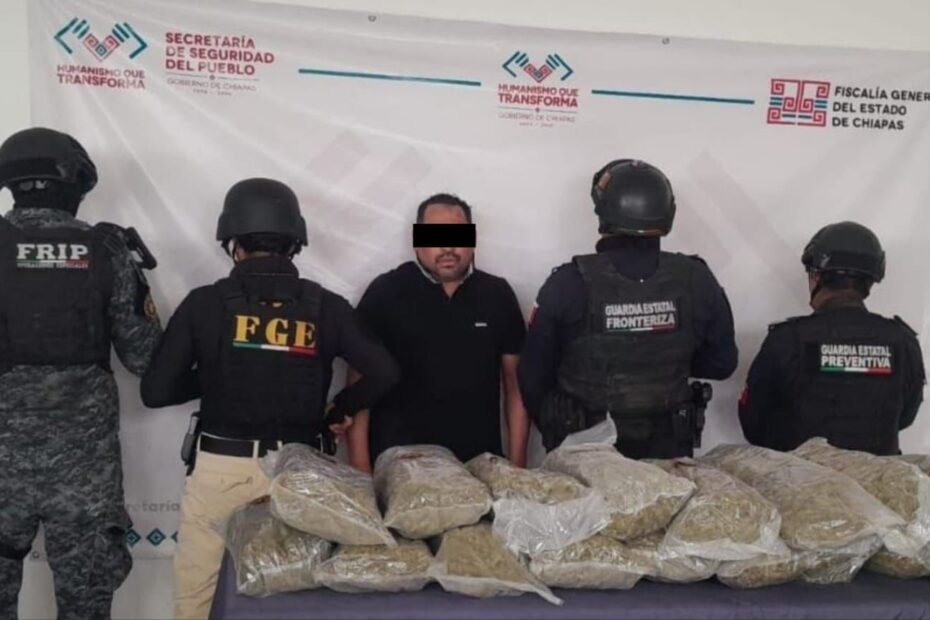 La Fiscalía General del Estado y la Secretaría de Seguridad del Pueblo detuvieron en flagrancia a Juan “N”, como presunto responsable del delito contra la salud, por hechos ocurridos en el municipio de Suchiate.