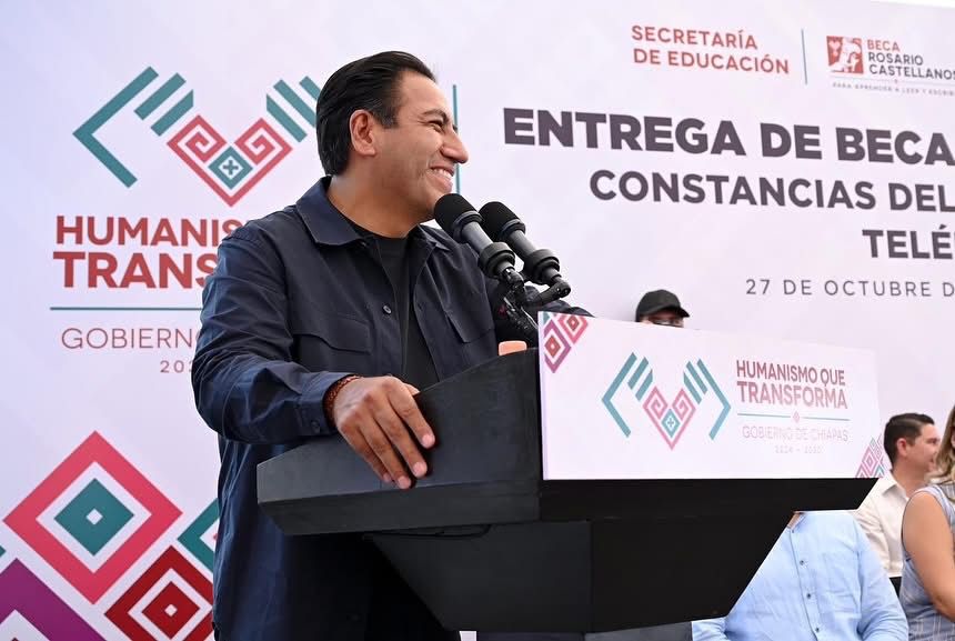 Durante la entrega de becas de alfabetización Rosario Castellanos, constancias del programa Chiapas Puede y celulares Alfacel, el gobernador Eduardo Ramírez Aguilar destacó que uno de los propósitos del gobierno de la Nueva ERA es fortalecer la educación. Enfatizó que se trabaja en unidad para que más personas aprendan a leer y escribir, con la meta de alzar bandera blanca como símbolo de que Chiapas ha vencido en la lucha contra la ignorancia.