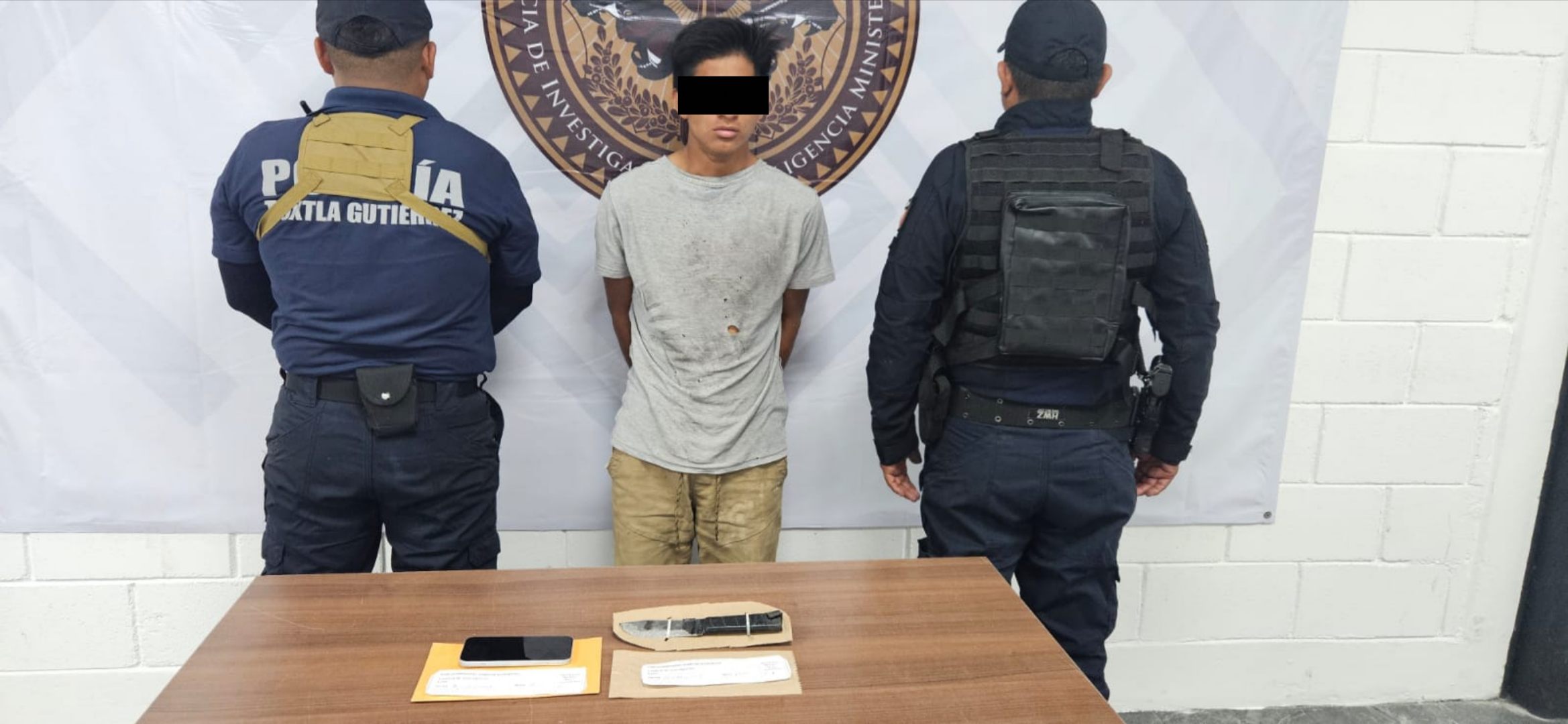 De acuerdo con los hechos, el inculpado ingresó al negocio de la víctima a quien amagó con un arma blanca para despojarla de un teléfono celular y huir del lugar, sin embargo, fue detenido por la víctima y vecinos, quienes lo entregaron a las autoridades.