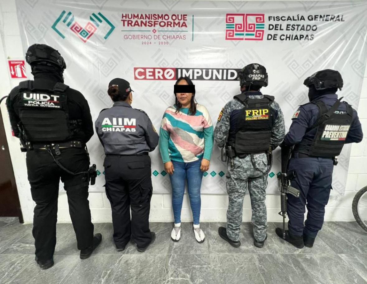 La Fiscalía General del Estado, a través de la Fiscalía de Distrito Metropolitano, y la Secretaría de Seguridad del Pueblo, cumplimentaron un mandamiento judicial en contra de Angélica “N”, como presunta responsable de robo con violencia, cometido en agravio de la tienda departamental Liverpool, por hechos ocurridos el 19 de diciembre del 2025 en Tuxtla Gutiérrez.