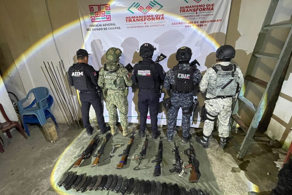 El Grupo Interinstitucional, conformado por la Fiscalía General del Estado, la Secretaría de la Defensa Nacional, la Guardia Nacional y la Secretaría de Seguridad del Pueblo, detuvieron en flagrancia a Ángel “N”, Rolando “N”, Ervin “N”, Mario R “N” y Mario “N”, los últimos cuatro originarios de Guatemala, como presuntos responsables de los delitos de homicidio calificado, asociación delictuosa, atentados contra la paz y la integridad corporal del estado y violación a la Ley Federal de Armas de Fuego y Explosivos, por hechos ocurridos en el municipio de Amatenango de la Frontera.