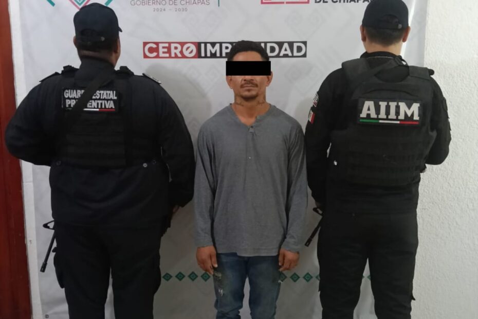 La Fiscalía General del Estado y la Secretaría de Seguridad del Pueblo ejecutaron una orden de aprehensión en contra de José “N”, como presunto responsable del delito de violencia familiar agravada, cometido en agravio de una mujer de identidad reservada, por hechos ocurridos en el municipio de Villa Comaltitlán, los días 1 y 6 de octubre de 2025.