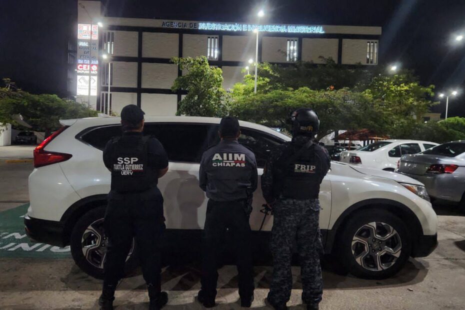 Los elementos localizaron en el estacionamiento de una plaza, ubicada en el bulevar Ciro Farrera y bulevar Ángel Albino Corzo, de la colonia Bugambilias, un Honda CR-V blanco, con placas de circulación particulares del estado.