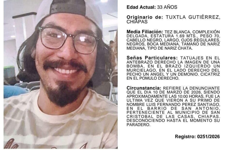 El caso se suma a otros reportes de desapariciones que han impactado a diversas comunidades de Chiapas en meses recientes, donde las familias han hecho públicos llamados de apoyo para localizar a sus seres queridos.