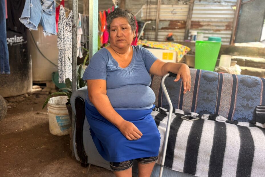 Doña Romelia, relata con tristeza que en ocasiones no tiene a quién pedir ayuda, y expresa su deseo de que alguien pueda apoyarla para levantar un poco más su vivienda y evitar que las lluvias la sigan afectando.