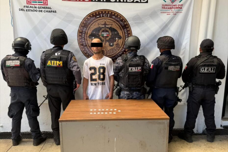 La Secretaría de Seguridad del Pueblo (SSP) a través de la Fuerza de Reacción Inmediata Pakal (FRIP), Guardia Estatal Fronteriza y Guardia Estatal Preventiva en coordinación con la Agencia de Investigación e Inteligencia Ministerial (AIIM) y Policía Municipal, detuvieron a una persona con presuntos narcóticos, en el municipio de Tapachula.