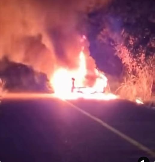 Vehículo se incendia en la carretera vieja Chiapa de Corzo-Acala está noche, todo parece indicar que lo anterior lo originó un cortocircuito.