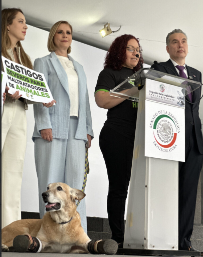 Pay de Limón, el perrito mutilado por el crimen organizado, presenta junto a Sofía Sisniega, iniciativa para tipificar el maltrato animal como delito grave.