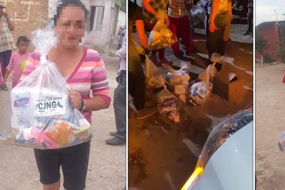 Según algunos de los clips compartidos en medios de comunicación y redes, personas armadas con uniformes tácticos y pasamontañas transportan víveres en camionetas que reparten a los ciudadanos damnificados. En los mismos vídeos se les escucha decir que serían un “apoyo” enviado por el CJNG.