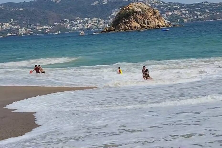 Dos jóvenes son arrastrados por las olas en playa de Acapulco