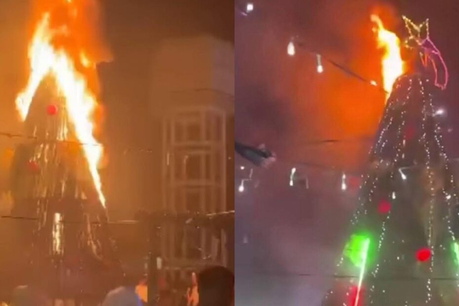 El primer incidente ocurrió la noche del domingo 14 de diciembre en la localidad de El Carmen, en Tula de Allende, Hidalgo, durante la inauguración oficial del árbol navideño. Familias completas se encontraban reunidas cuando, tras el encendido de luces, comenzaron los fuegos artificiales. Chispas lanzadas muy cerca del adorno, de más de 10 metros de altura, alcanzaron la estructura decorada con luces, esferas y una estrella dorada, provocando un incendio que se extendió rápidamente. Vecinos, e incluso un Santa Claus que animaba el evento, intentaron apagar el fuego con cubetas de agua, pero el árbol fue consumido por completo y el evento tuvo que ser cancelado.