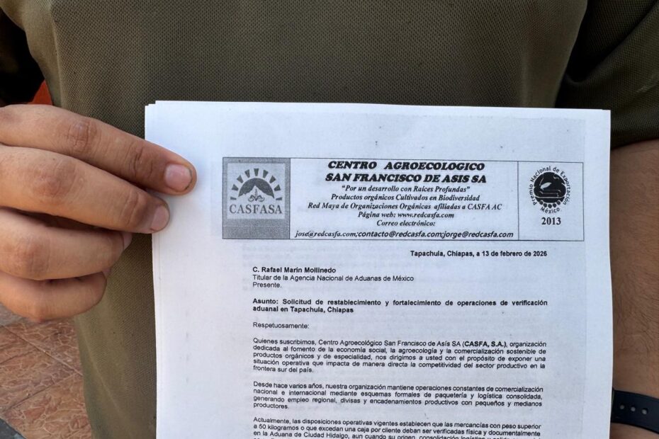 Desde hace varios años, casfa mantiene operaciones constantes de comercialización nacional e internacional mediante esquemas formales de paquetería y logística consolidada, generando empleo regional, divisas y encadenamientos productivos con pequeños y medianos productores. Sin embargo, las disposiciones actuales establecen que las mercancías con peso superior a 50 kilogramos o que excedan una caja por cliente deban ser verificadas física y documentalmente en la Aduana de Ciudad Hidalgo.
