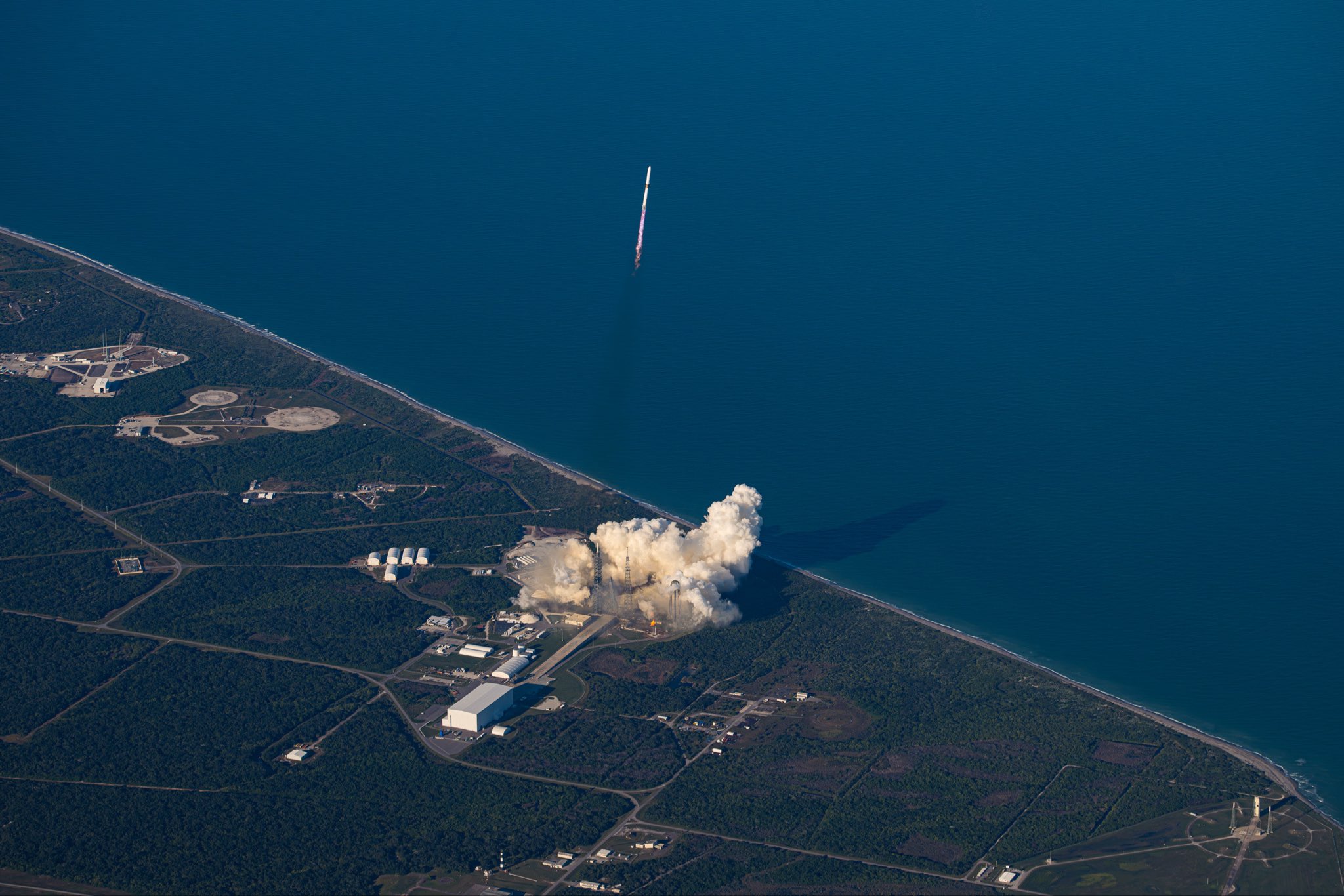Mientras la segunda etapa del cohete siguió su camino hacia el planeta rojo, la primera etapa descendió suavemente sobre una plataforma flotante en el mar, a cientos de kilómetros de la costa de Florida.