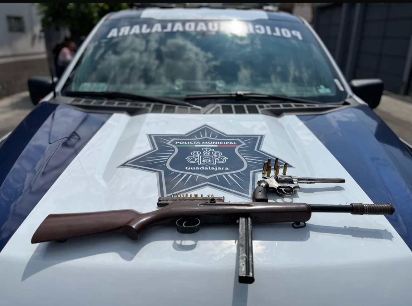 Oficiales de la Comisaría de Seguridad Ciudadana de Guadalajara detuvieron a un hombre señalado por presuntamente agredir y amenazar a su familia utilizando armas de fuego en la Colonia 18 de marzo