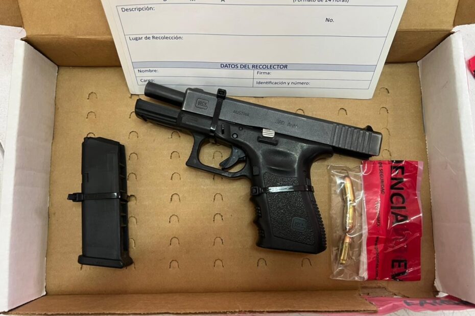Éste al percatarse de la presencia de los policías, mostró una actitud inusual por lo que fue interceptado. En la revisión le encontraron una arma de fuego calibre 9 milímetros y un cargador, por lo que fue detenido.