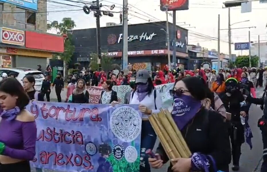 Integrantes del Frente Feminista de Jalisco y de otros colectivos tomaron algunas calles de Guadalajara con motivo del Día de la Eliminación de la Violencia contra las Mujeres, para exigir un alto a las agresiones.