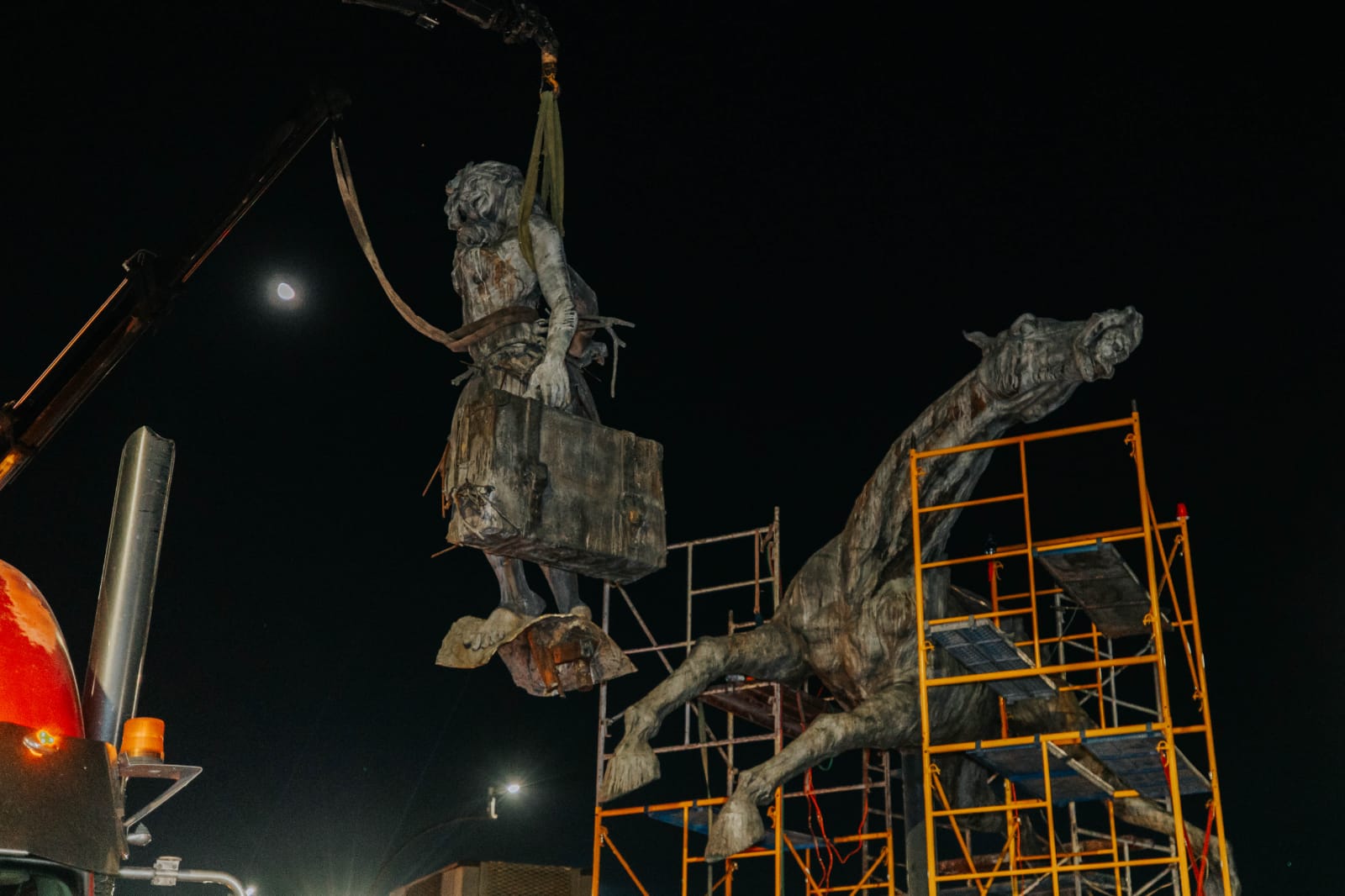Esta madrugada de este martes comenzaron los trabajos para retirar el conjunto escultórico denominado “Las Tres Gracias”, ubicado en el camellón central de Lázaro Cárdenas a su cruce con la calle Fuelle.