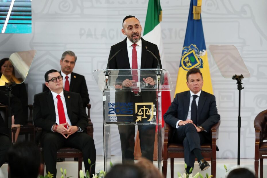“Todo el esfuerzo de este año, nuestros conocimientos, nuestra vocación y todo el talento que tiene el Poder Judicial, lo llevamos al límite en este 2025. Un año en el que trazamos un plan para el fortalecimiento de la impartición de justicia en nuestro estado, un plan que respondiera de manera muy puntual a los retos y necesidades sociales y que basamos en cuatro ejes fundamentales el primero justicia cercana evolución judicial tercero justicia confiable y cuarto excelencia judicial”, dijo José Luis Álvarez Pulido, presidente del Supremo Tribunal de Justicia.