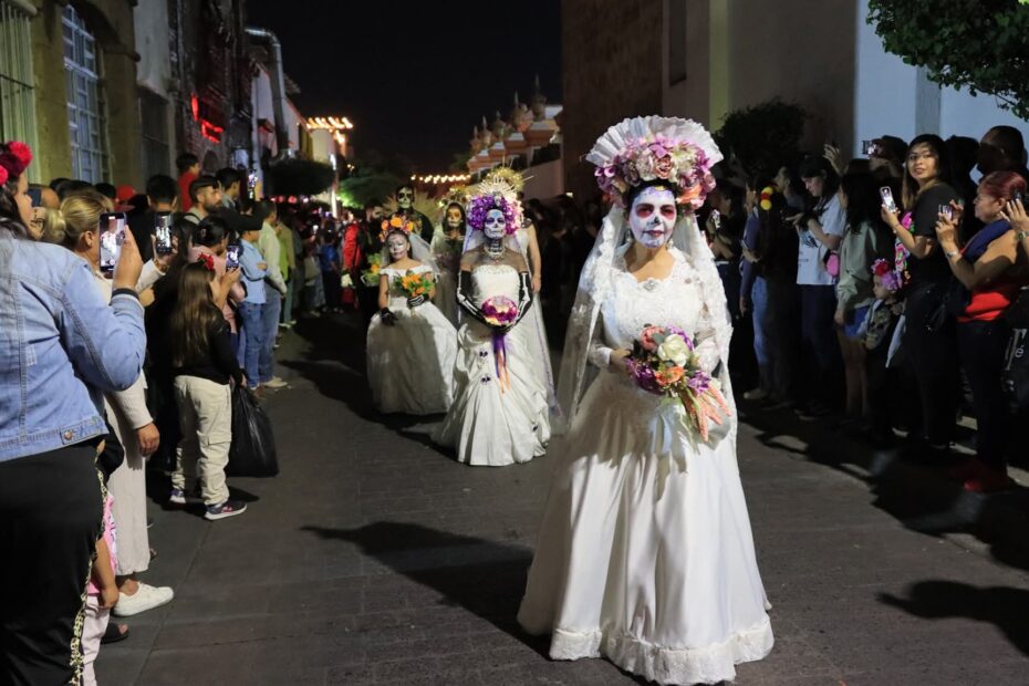 Las plazas y calles fueron decoradas con catrinas elegantes, catrines de porte antiguo, papel picado que danzaba con el viento y el aroma dulce del pan de muerto recién horneado.