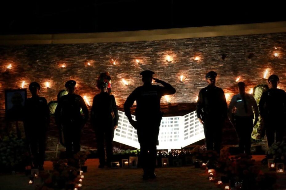 Los oficiales de la corporación, así como el escuadrón Catrina y algunos de los familiares, colocaron un enorme altar de muertos, frente al Muro de los Caídos, para honrar y recordar el compromiso, valor y amor de todos ellos.