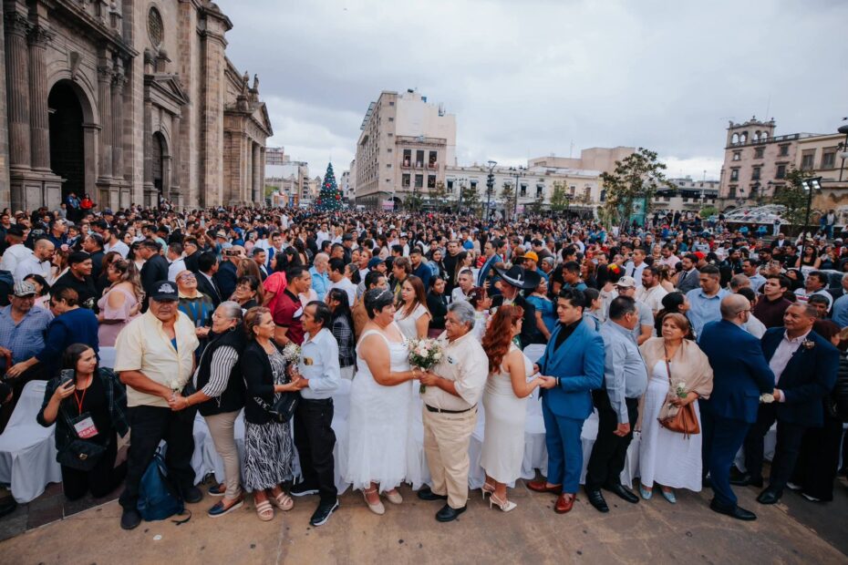 La Presidenta de Guadalajara, Verónica Delgadillo, encabezó la ceremonia protocolaria y destacó que con estos matrimonios colectivos las parejas recibirán certeza jurídica, lo que les permitirá acceder a derechos legales, sociales, de salud, entre otros, teniendo como testigo el corazón de la ciudad.