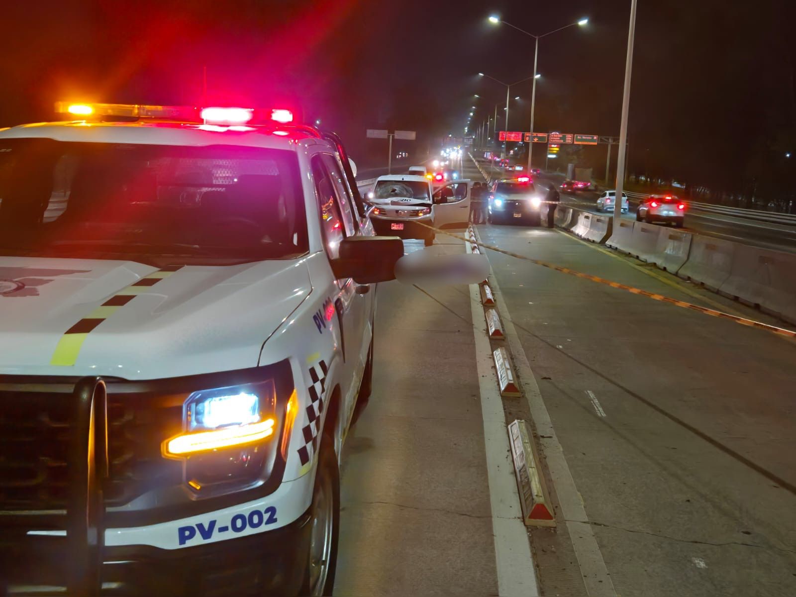 Al lugar arribaron elementos de la Policía Vial tras un reporte, el hombre ahora sin vida de entre 40 a 45 años, terminó tendido sobre el carril central.