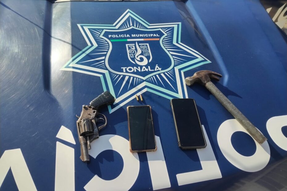 También aseguraron un arma de fuego tipo revólver, un martillo y dos celulares.