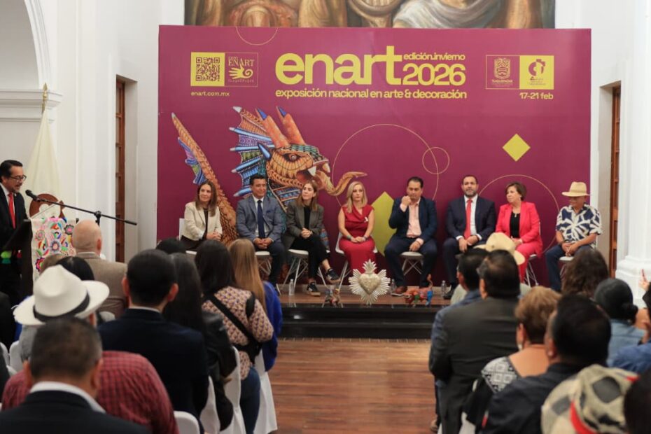 Al reunir a los mejores artesanos y fabricantes mexicanos, este día se inauguró la Exposición Nacional de Artículos de Regalo y Decoración Mexicana (Enart) en su edición Invierno 2026, en donde estuvieron presentes el secretario de Fomento Económico y Cultural, Juan David García Camarena; la presidenta de la Camara Nacional de Comercio y Servicios de Tlaquepaque, Angélica Aguayo Pérez y la secretaria de Desarrollo Económico del Gobierno del Estado de Jalisco, Cindy Blanco Ochoa. En esta edición se reconocerá a los artesanos cuyas piezas sean inspiradas en el mundial 2026.