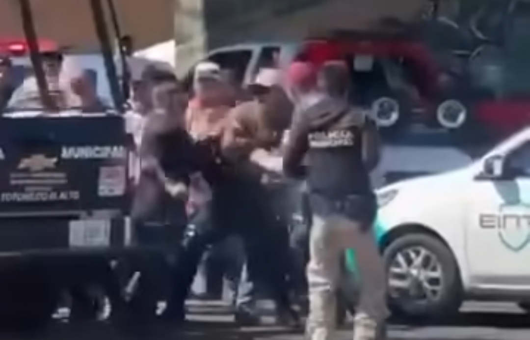 Durante una protesta de productores del campo un elemento de la Policía municipal de Atotonilco el Alto, accionó su arma de cargo, aparentemente para dispersar a los manifestantes, quienes se estaban agarrando a golpes con una persona vestida de negro que en apariencia se trataba de un policía.