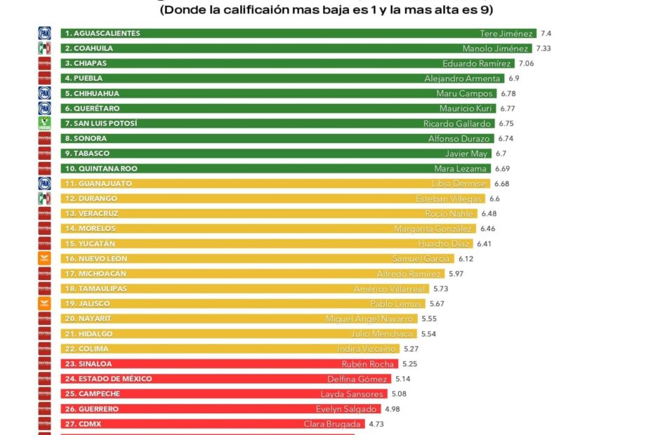 El gobierno de Javier May Rodríguez mantiene una aprobación generalizada de la ciudadanía, al grado tal que es evaluado en noveno lugar a nivel nacional, por su desempeño.