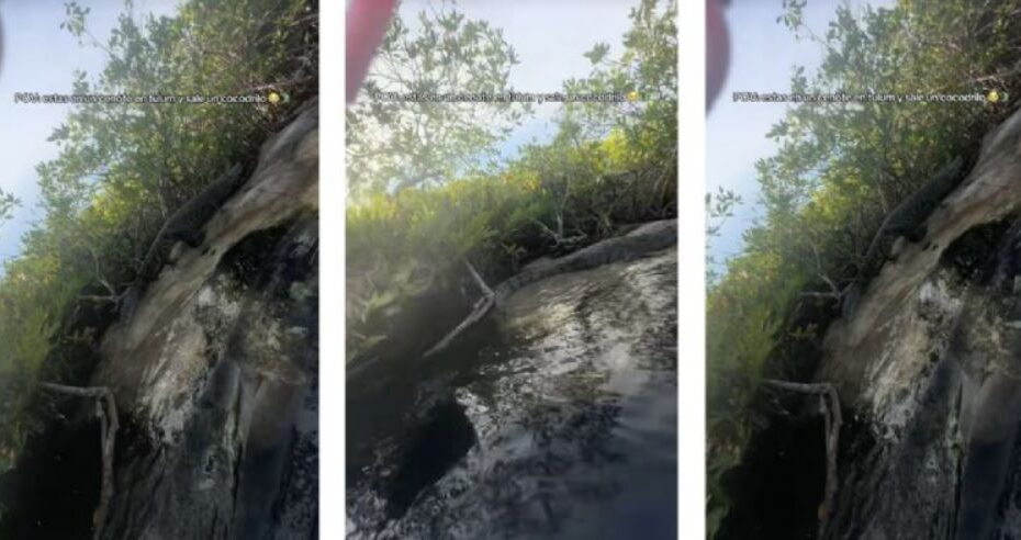 Un par de jóvenes se volvió viral en TikTok luego de compartir un video en el que presumen cómo mientras realizaban kayak en un manglar de Tulum, Quintana Roo, se encontraron al enorme réptil, quien se encontraba descansando entre los límites del agua y de la arena.