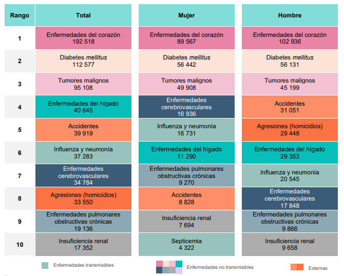 Las primeras cinco causas de defunción a nivel nacional fueron las enfermedades