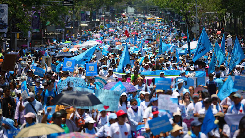 Miles de personas marcharon ayer en Ciudad de México y una decena de ciudades del país en la quinta edición de la “Celebración Nacional a Favor de la Mujer y de la Vida”, impulsada por colectivos civiles y grupos religiosos que rechazan lo que consideran una confrontación entre los derechos de las mujeres y la protección de la vida prenatal.