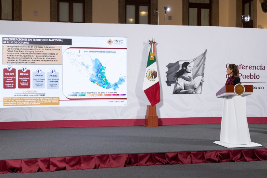 “Esta es una tormenta tropical que muy parecida a Priscila va recorriendo todo el Pacífico de manera paralela al territorio nacional. Es muy probable que sábado-domingo entre como depresión tropical a Baja California Sur, ya también se ha desplegado ahí un enlace de coordinación por parte de protección civil, el plan de DNIII y Plan Marina. Aquí tenemos afectaciones por esta tormenta tropical en Chiapas, en Guerrero, en Oaxaca y en Michoacán. Aquí se está haciendo también la evaluación de daños”, detalló la Coordinadora de Protección Civil, Laura Velázquez.