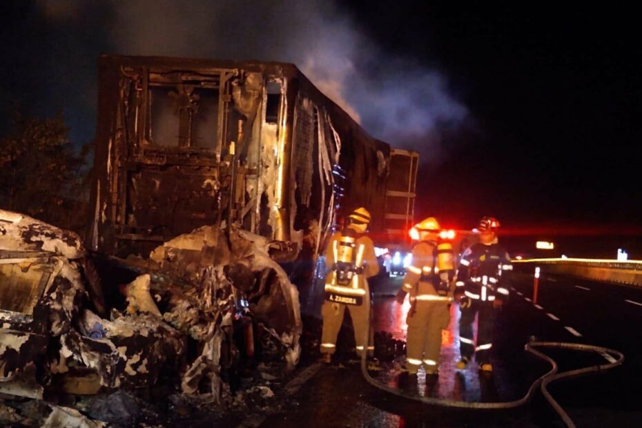 Un tractocamión terminó convertido en chatarra carbonizada tras incendiarse sobre la autopista Siglo XXI, en el tramo carretero Pátzcuaro-Uruapan, informaron fuentes de rescate y policiales, las cuales agregaron que la quemazón se debió a una falla mecánica y no hubo personas heridas.