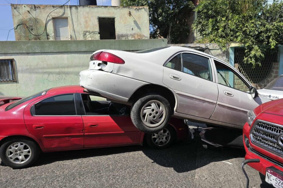 Morelia, Mich.- Viernes 30 de enero de 2026.- Un adulto mayor, a bordo de su automóvil, arrancó en reversa, embistió a un motociclista y su unidad terminó arriba de otro automotor; además, en la maniobra, dañó el costado derecho de una camioneta. En el incidente resultaron heridos el motorista y el hombre de la tercera edad, trascendió en la cobertura de la noticia.
