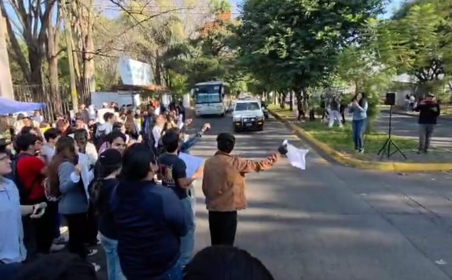 Lanzando consignas en contra de los gobiernos del estado y federal, así como exigiendo justicia para Carlos Manzo, los manifestantes recorrieron varias calles para regresar a las preparatorias dependientes de la Universidad Michoacana, donde permanecen en plantón, al igual que en la facultad de Agrobiología.