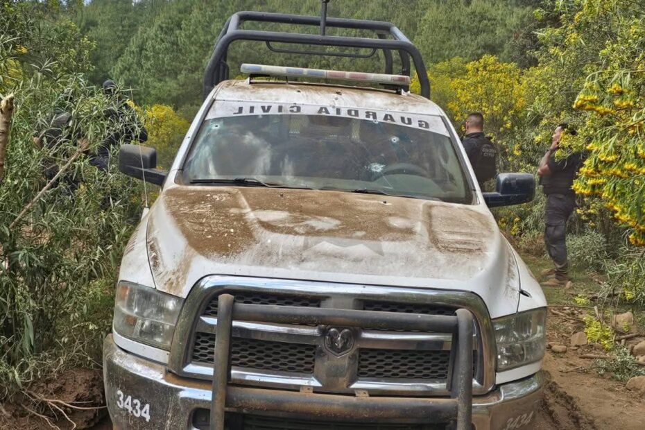 Presuntos criminales atacaron con armas largas y explosivos arrojados desde drones a elementos de la Policía Municipal de Nahuatzen en un camino de terracería; afortunadamente, los uniformados resultaron ilesos.