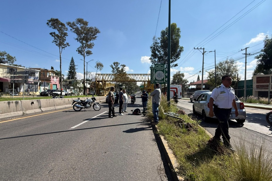 En la escena, un motociclista y un auto protagonizaron un choque. El motorista quedó lesionado, él fue auxiliado por paramédicos y canalizado a un hospital para su correcta valoración médica. Unos oficiales efectuaron las acciones conducentes del asunto.