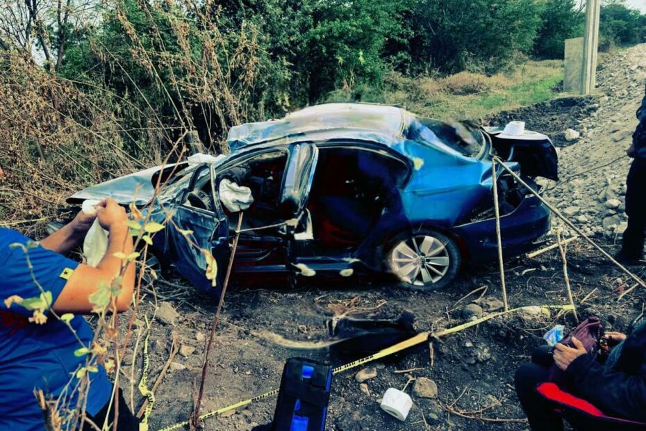 El aparatoso accidente se registró a la altura de la comunidad del crucero de Las Yeguas, sitio en el que un vehículo Volkswagen de color azul salió de la carpeta asfáltica, volcó y terminó de nuevo sobre sus cuatro llantas.
