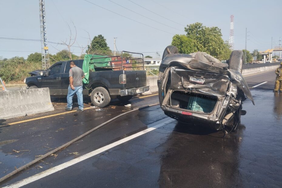 Apatzingán, Mich.- 09 de Abril del 2026 – Dos personas lesionadas y cuantiosos daños materiales dejó como saldo un fuerte accidente vehicular, sobre la carretera Apatzingán–Cuatro Caminos, a la altura de la empresa Bimbo.