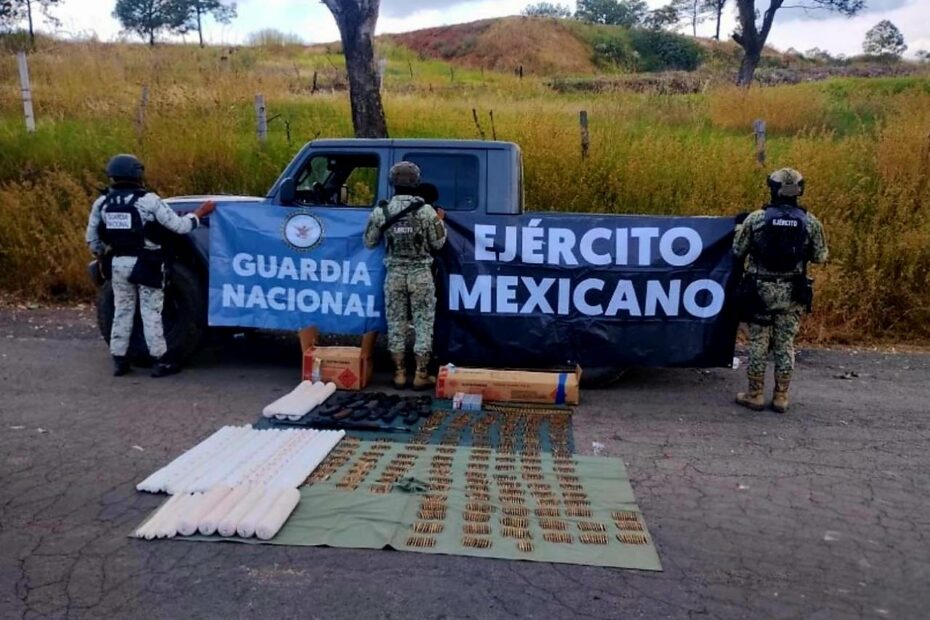 Derivado de los constantes operativos en la región de Cotija, zona limítrofe entre Michoacán y Jalisco, personal de la Secretaria de la Defensa Nacional, logro el aseguramiento de una camioneta en la que eran transportados más de 52 kilos de material explosivo y armamento.