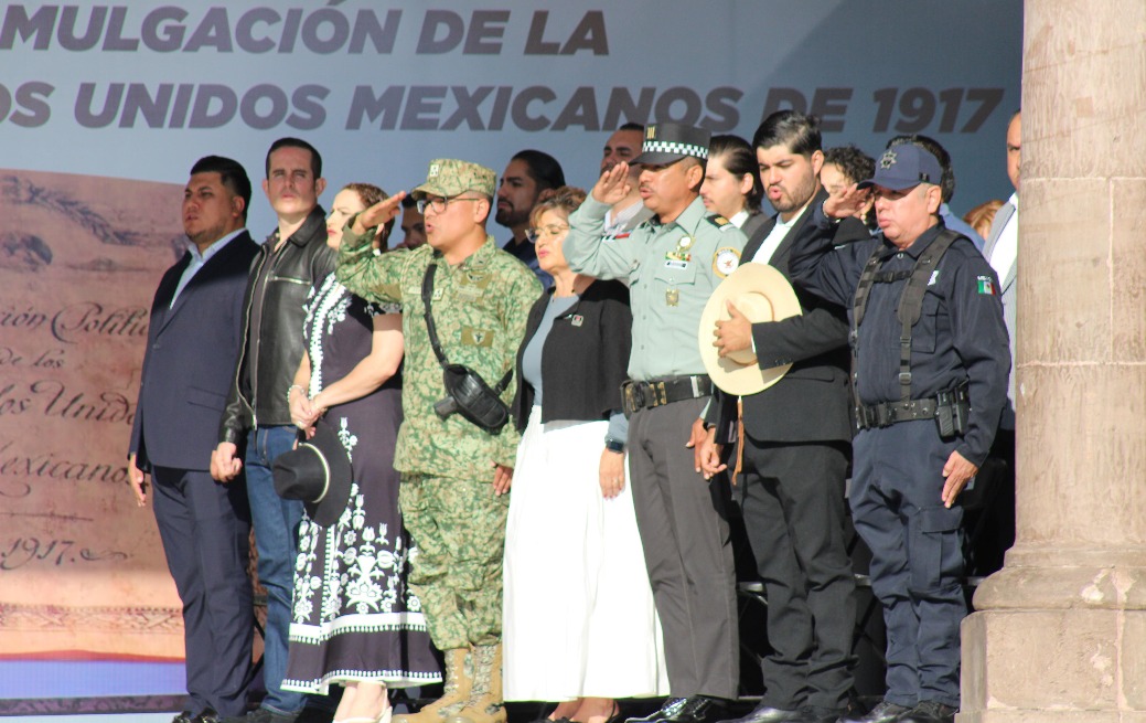 Morelia, Mich. a 5 de febrero de 2026.- La Secretaría de la Defensa Nacional a través de la Comandancia de la 21/a. Zona Militar hace del conocimiento a la opinión pública que esta fecha en el marco de los eventos de “Febrero, mes del Ejército y Fuerza Aérea Mexicanos”, se llevó a cabo un Ceremonia de Honores a la Bandera “Conmemorativa al 109 Aniversario de la Promulgación de la Constitución Política de los Estados Unidos Mexicanos de 1917” en la Plaza “Mártires” de Uruapan Michoacán.