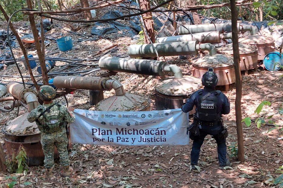 En una acción operativa interinstitucional en el municipio de Arteaga, la Secretaría de Seguridad Pública (SSP) y el Ejército Mexicano desmantelaron un laboratorio clandestino en la localidad de La Placita. En el sitio, presuntamente utilizado para elaborar drogas sintéticas, se aseguraron reactores industriales, contenedores de químicos, tanques de gas y equipo especializado para la producción de narcóticos.