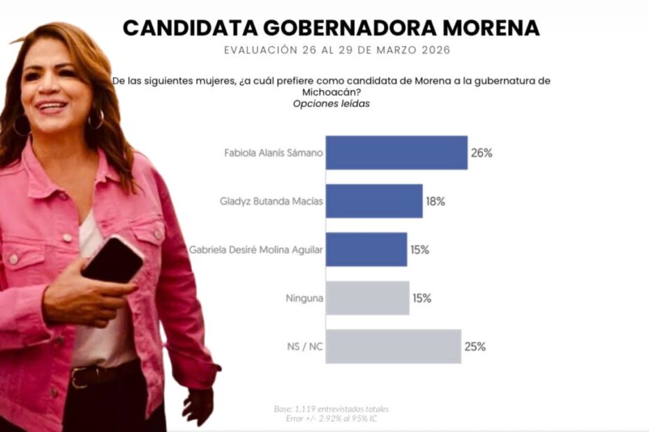 Ciudad de México, a 7 de abril, 2026.- La más reciente encuesta publicada por Question Mark confirma un punto de inflexión en la contienda interna de Morena en Michoacán: Fabiola Alanís se consolida como el perfil con mayor crecimiento sostenido, mejor percepción ciudadana y mayor ventaja competitiva frente a la oposición.
