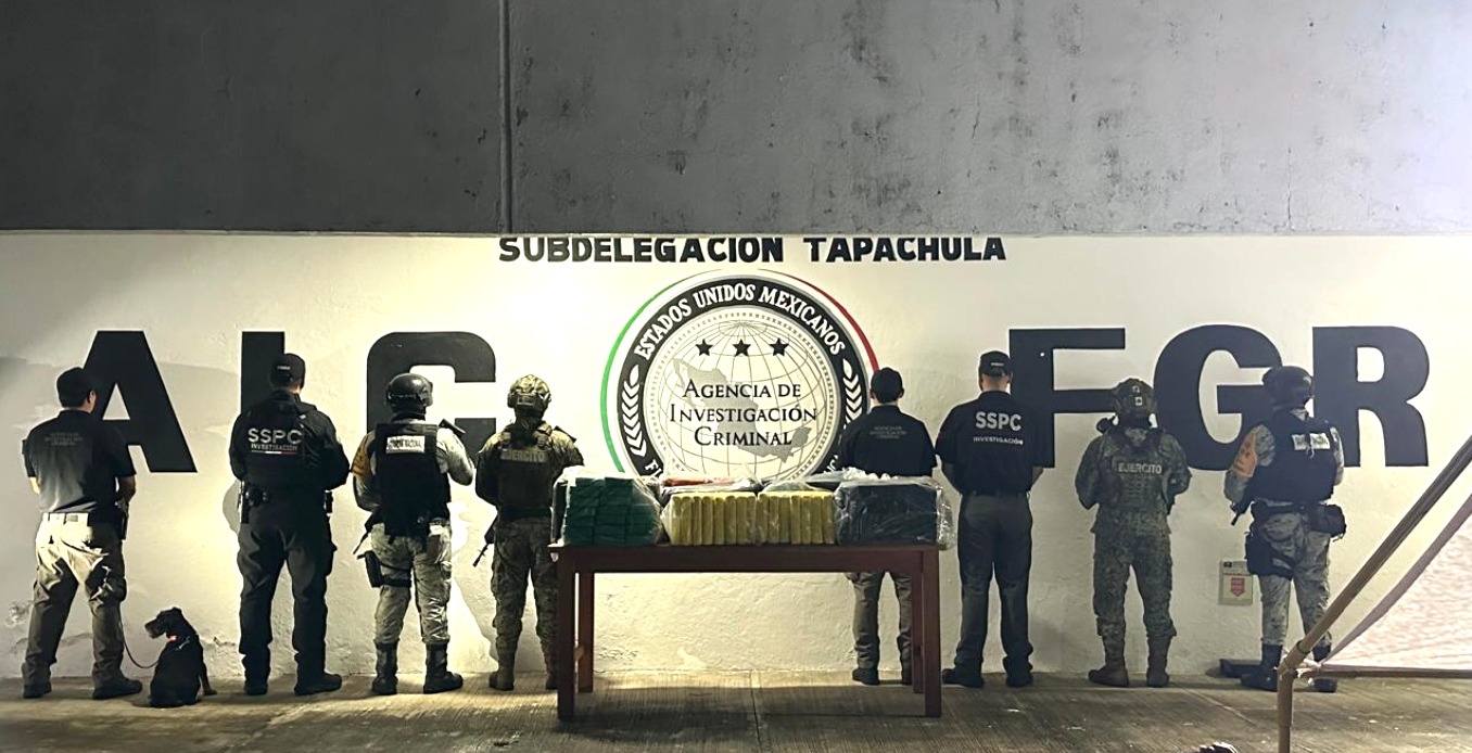 aseguraron 203 paquetes con probable narcótico en un inmueble utilizado como aeródromo en Tapachula de Córdova y Ordóñez.