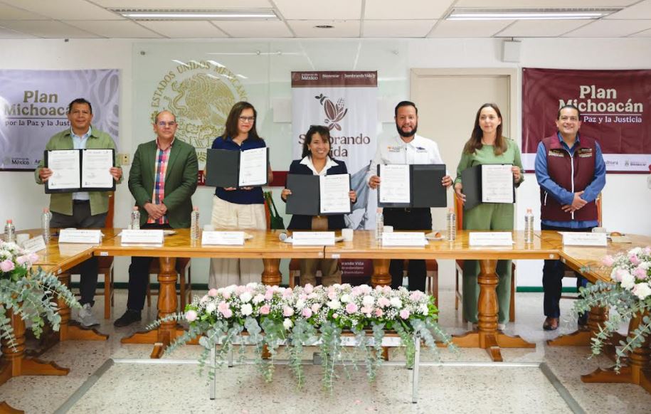 La Subsecretaría de Inclusión Productiva y Desarrollo Rural de la Secretaría de Bienestar, de manera simultánea, firmó tres convenios de colaboración entre el Programa Sembrando Vida, la Universidad Intercultural Indígena de Michoacán (UIIM), el Instituto de Capacitación para el Trabajo del Estado de Michoacán (ICATMI) y el Centro de Innovación y Desarrollo Agroalimentario de Michoacán (CIDAM), como parte de las acciones del Plan Michoacán por la Paz y la Justicia.
