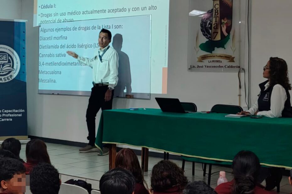 Con el objetivo de sensibilizar a las y los adolescentes sobre los riesgos del consumo de sustancias ilícitas, la Fiscalía General del Estado de Michoacán (FGE) impartió la capacitación “Prevención de Adicciones” dirigida a la comunidad estudiantil del Centro de Bachillerato Tecnológico Agropecuario (CBTA) No. 7.
