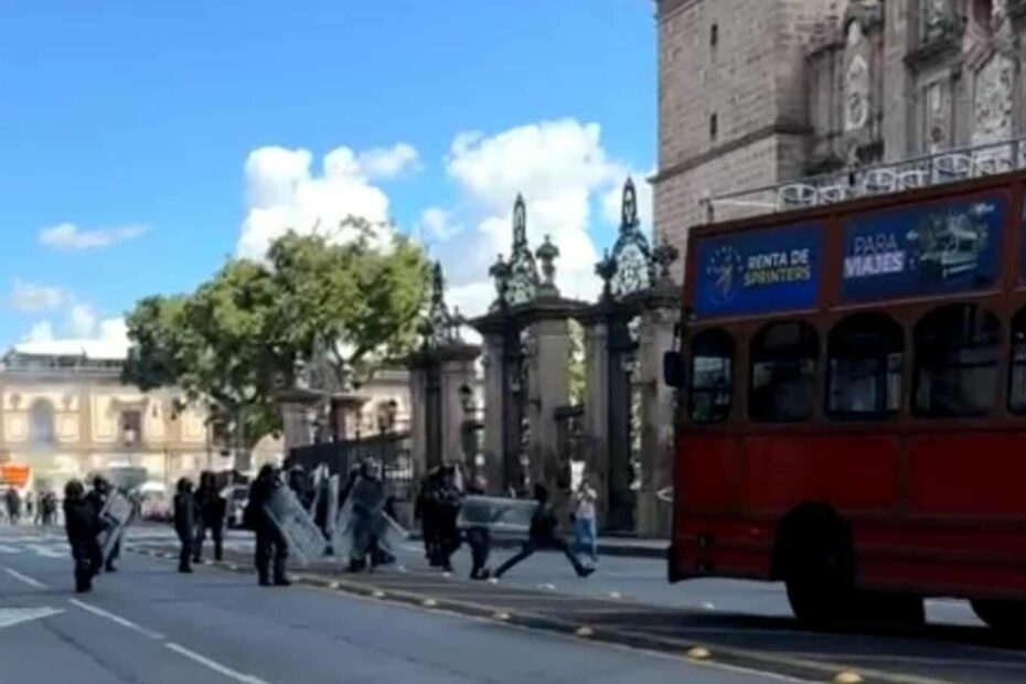 Encolerizados integrantes del Frente Nacional de Lucha por el Socialismo (FNLS) se apoderaron de los dos camiones tranvías turísticos y uno de ellos lo dirigieron contra elementos de la Unidad de Restablecimiento del Orden Público (UROP), esto en pleno Centro Histórico de Morelia.